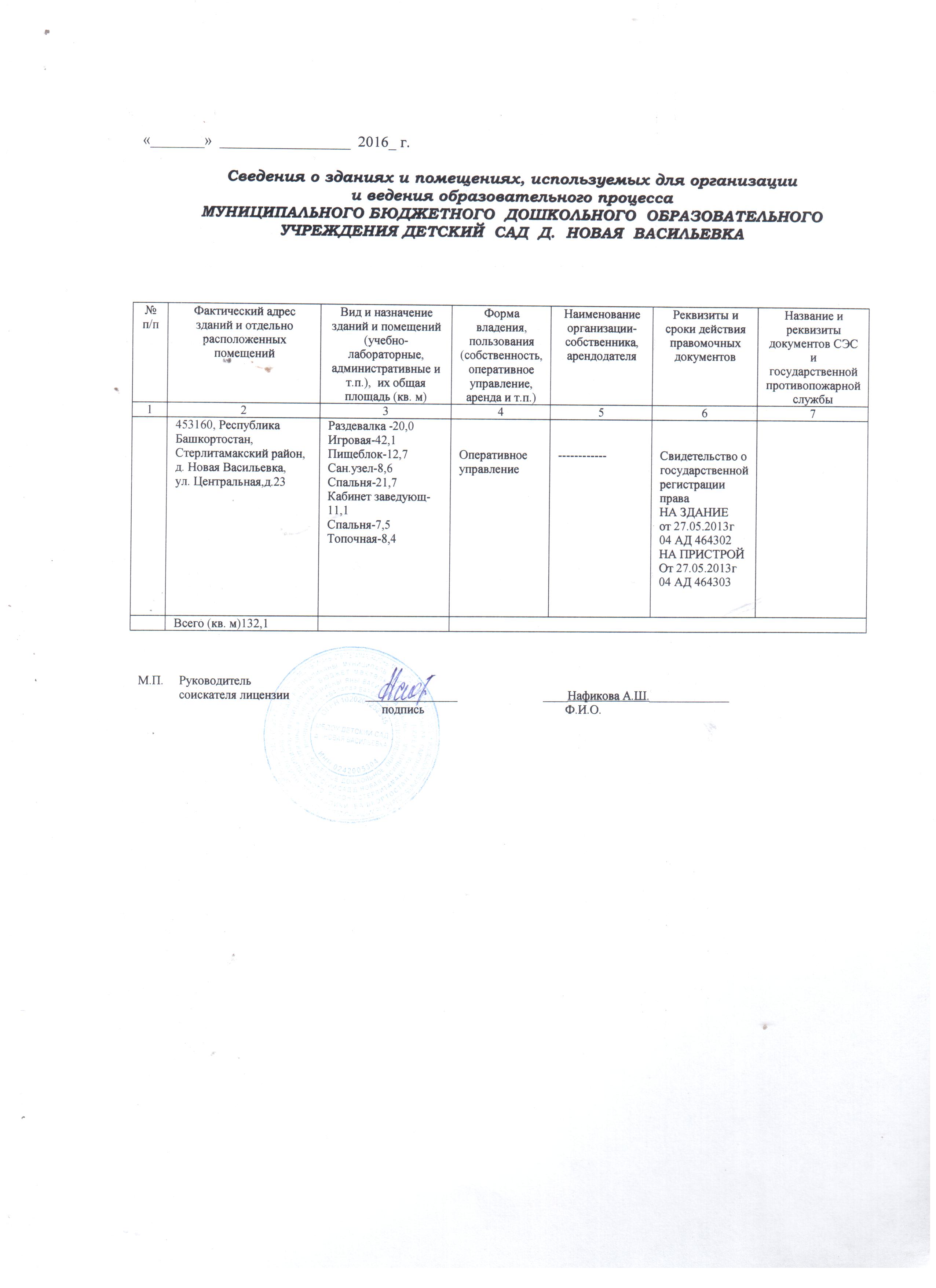 | Наименование объекта | Адрес места нахождения | Площадь, м2 | Количество мест | Приспособленность помещений для использования инвалидами и лицами с ограниченными возможностями здоровья |